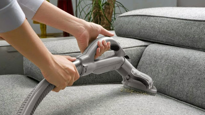 - Bước 1: Sử dụng máy hút bụi để làm sạch toàn bộ bề mặt cũng như các khe hở của ghế sofa, giúp loại bỏ bụi bẩn và bụi mịn.