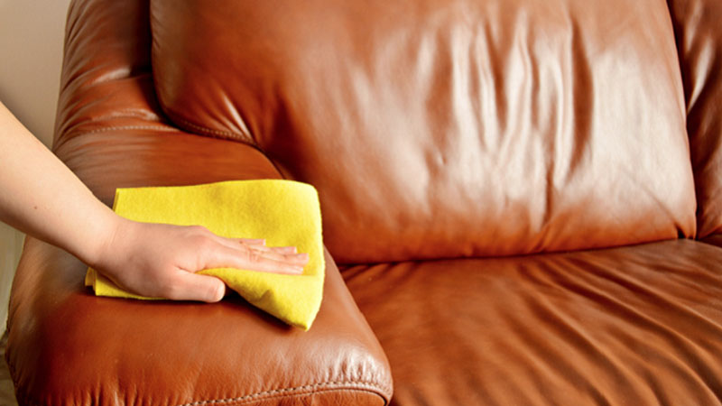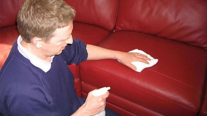 - Bước 2: Nhỏ một vài giọt xà phòng có tính dưỡng ẩm vào một miếng khăn mềm đã được làm ẩm và tiến hành lau nhẹ nhàng tất cả các bề mặt của ghế sofa, giúp làm sạch và duy trì độ ẩm cho da.